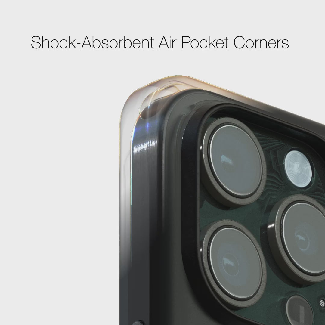 Raised corners to protect the screen and cushioned corners for shock absorption.