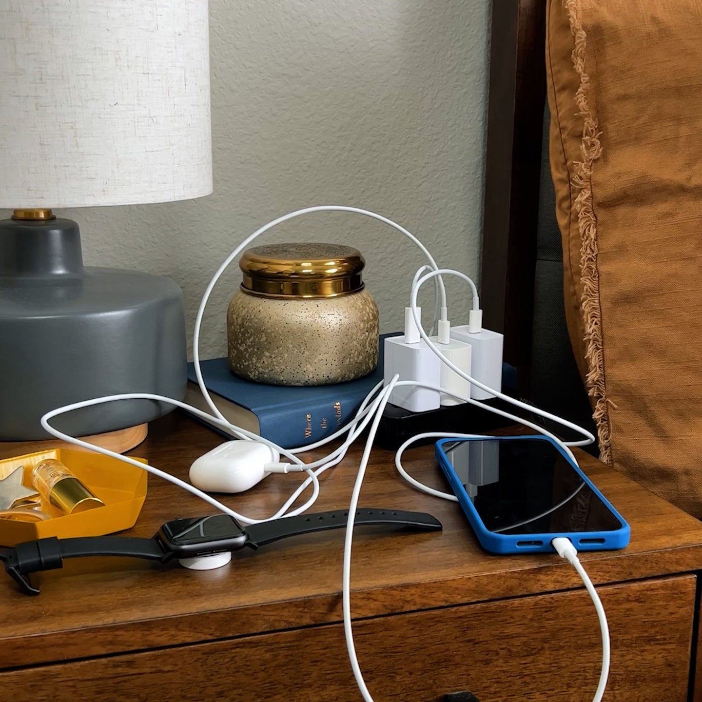 Charge your Phone, Apple / Samsung Watch, and AirPods / Earbuds simultaneously. Save time, space, and eliminate messy cables.