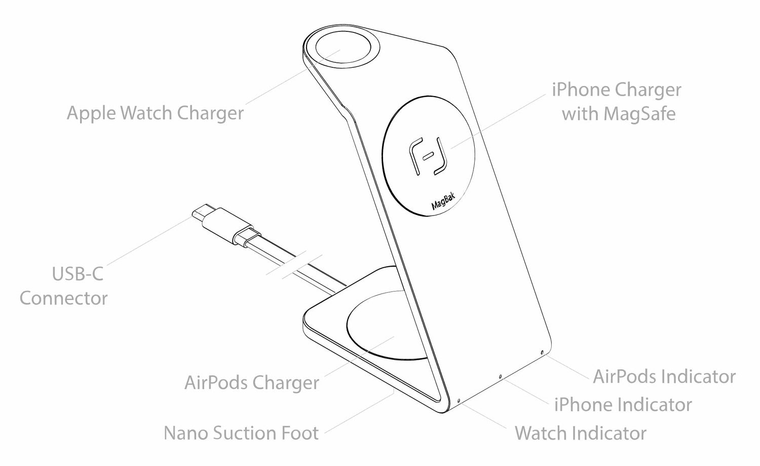 - MagBak Wireless Multi-Charger with 1.5m USB-C cable.